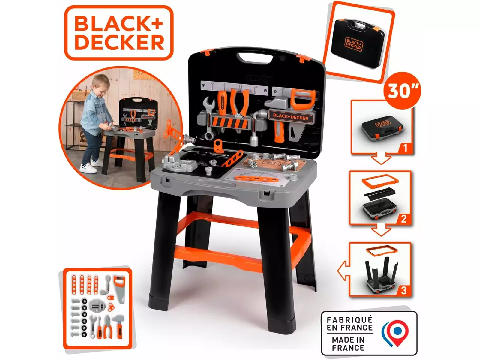 Fai emergere il lato tuttofare dei più piccoli grazie alla nuova Black & Decker Valigetta e banco da lavoro con 25 accessori!
