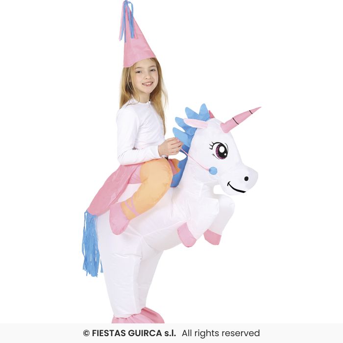 Trasforma ogni festa in un’avventura leggendaria con questo magico costume gonfiabile che regala l’illusione di cavalcare un vero unicorno fatato. Realizzato con materiali leggeri e resistenti, il costume si gonfia rapidamente grazie al sistema integrato, garantendo un effetto scenico straordinario e massima libertà di movimento per correre tra nuvole di fantasia. I dettagli color pastello, il corno rosa e il cappello coordinato incluso rendono questo travestimento perfetto per Carnevale, feste a tema o momenti di gioco indimenticabili dove la magia non ha mai fine.