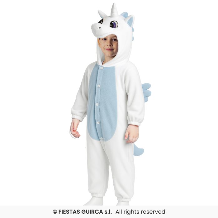 Trasforma i sogni del tuo bambino in realtà con questo incantevole costume da unicorno, perfetto per avventure fiabesche e pomeriggi all’insegna della fantasia ☁️. Realizzato in un tessuto soffice e caldo nei toni del bianco e del celeste, questo kigurumi avvolge i più piccoli in un abbraccio di morbidezza garantendo al contempo la massima libertà di movimento grazie al design a tuta intera con pratica chiusura frontale 🌈. Il cappuccio integrato, arricchito dal magico corno e dai grandi occhi espressivi, insieme alle graziose ali sulla schiena, aggiunge un tocco di meraviglia che renderà ogni festa di Carnevale o gioco in casa un momento indimenticabile 🪄.