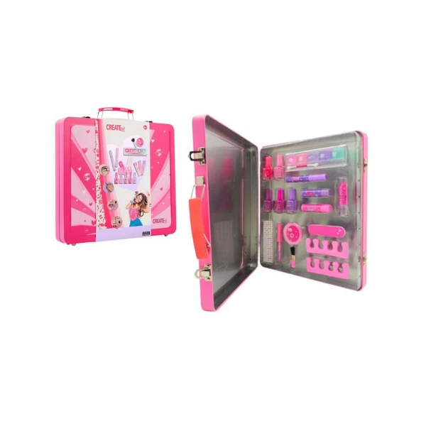 Una valigetta in latta completa di tanti trucchi per i tuoi migliori look.