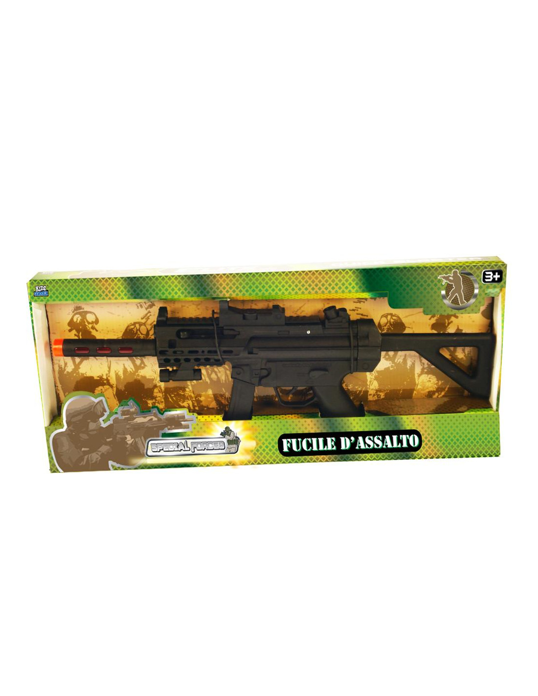 Un fucile d’assalto come quello dei soldati! Premi il grilletto sentirai lo sparo! Età minima consigliata 3+