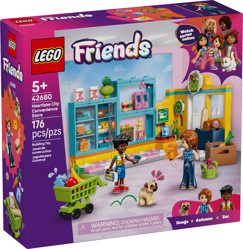 Il set LEGO Friends Minimarket di Heartlake City offre un’esperienza di gioco vivace e ricca di dettagli, dove i bambini possono accompagnare Autumn e Zac a fare la spesa. Con i suoi 176 pezzi, il set include un banco frigo ben rifornito, scaffali colmi di snack, una cassa per pagare e persino un carrello per trasportare frutta e verdura fresca. La presenza del simpatico carlino Dango aggiunge un tocco di dolcezza alle avventure quotidiane in città.
