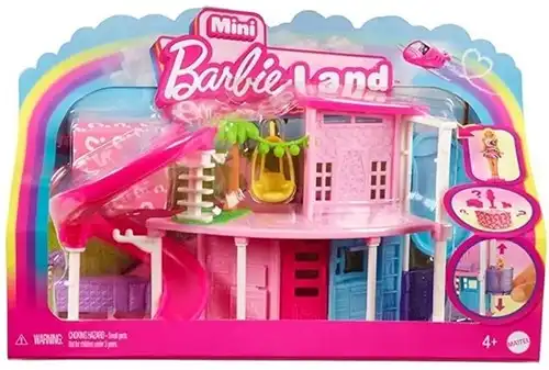 Entra nel magico mondo in miniatura con la Casa dei Sogni di Mini BarbieLand! Questo playset compatto racchiude tutta l’iconica eleganza di Barbie in una dimensione ridotta, completa di scivolo rosa, altalena a nido e piccoli accessori a sorpresa per arredare ogni stanza con stile e creativitร .