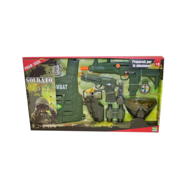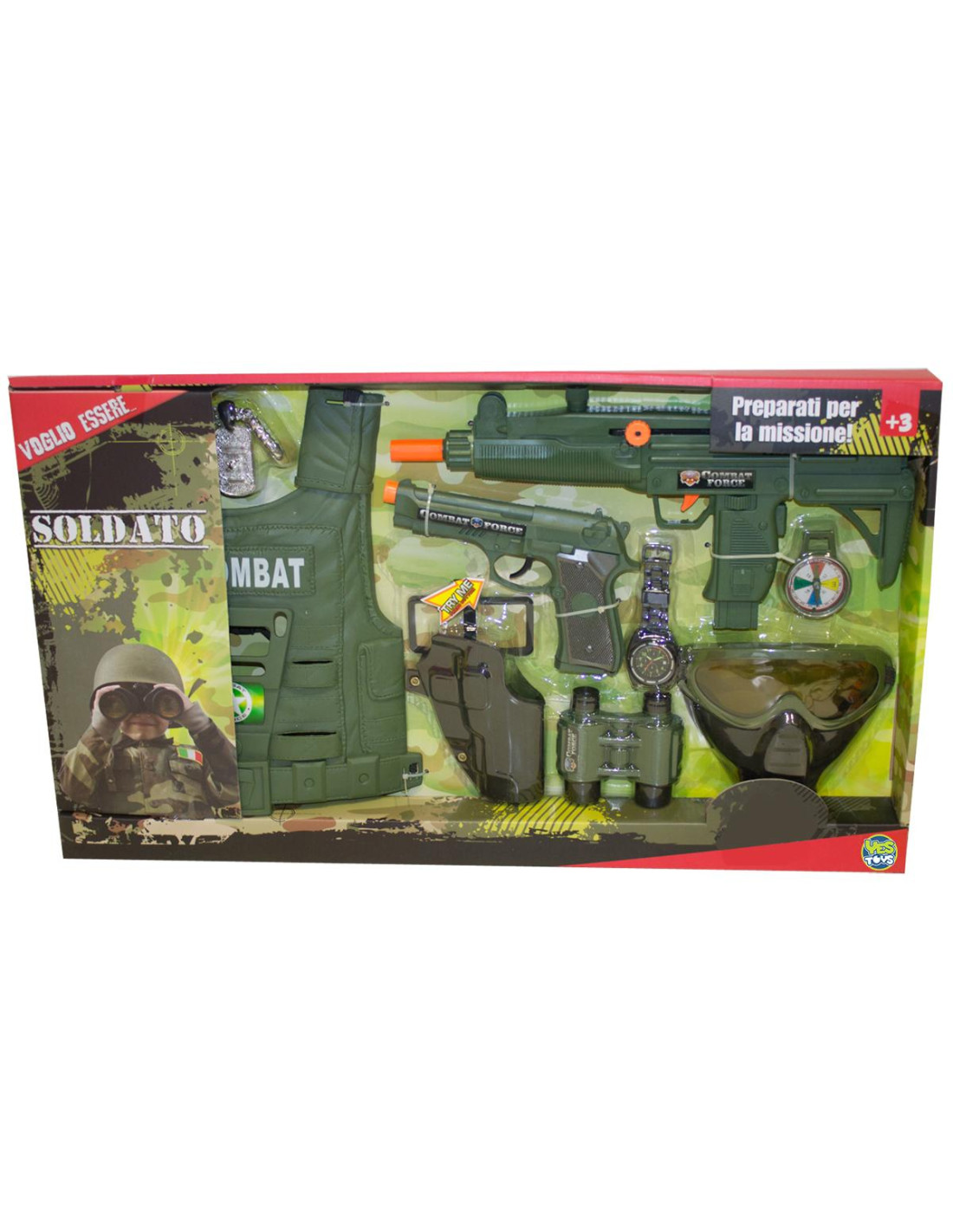 Set composto da corpetto, armi, maschera, binocolo e tutti gli accessori come un vero soldato!