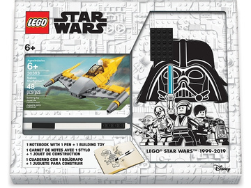 Oltre al taccuino con motivo LEGO e alla penna in gel LEGO, lo STAR WARS LEGO include un mini-kit del Naboo Starfighter.