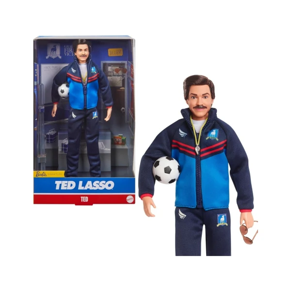 Barbie celebra la serie televisiva di successo Ted Lasso con una bambola da collezione! Barbie Ted Lasso indossa la sua iconica tuta sportiva blu con…
